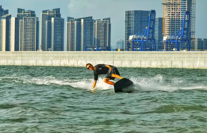 2022海南電動沖浪板體驗營面向廣大親水運動愛好者免費開展,活動內(nèi)容包括電動沖浪板培訓(xùn)、電動沖浪板環(huán)圈沖浪體驗、電動沖浪板水上盲盒奪寶等。活動吸引了來自全國各地的親水運動愛好者近百人參加,大家都穿戴好下水裝備,準備一試身手。來自外地的王先生玩過傳統(tǒng)沖浪板,這次來參加電動沖浪板體驗營,就是想感受一下電動沖浪板的特別之處,感受電動沖浪板的魅力。曾經(jīng)有過一次電動沖浪板體驗的楊女士,這次也是慕名前來參加,曾經(jīng)只能趴在電動沖浪板上玩,此次體驗的目標非常明確,就是站在電動沖浪板上,體驗一回真正的乘風破浪。來自海口的曹先生是一名水上運動愛好者,對于電動沖浪板而言,他表示上手簡單,教練教一次就可以掌握要領(lǐng),在無風無浪的情況下,也可以玩得很開心。